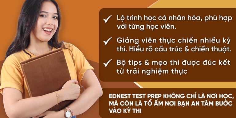 Đó là lý do EdNest Test Prep ra đời: để đúc kết kinh nghiệm thực chiến, biến hành trình học tập trở nên dễ dàng và có định hướng hơn.
