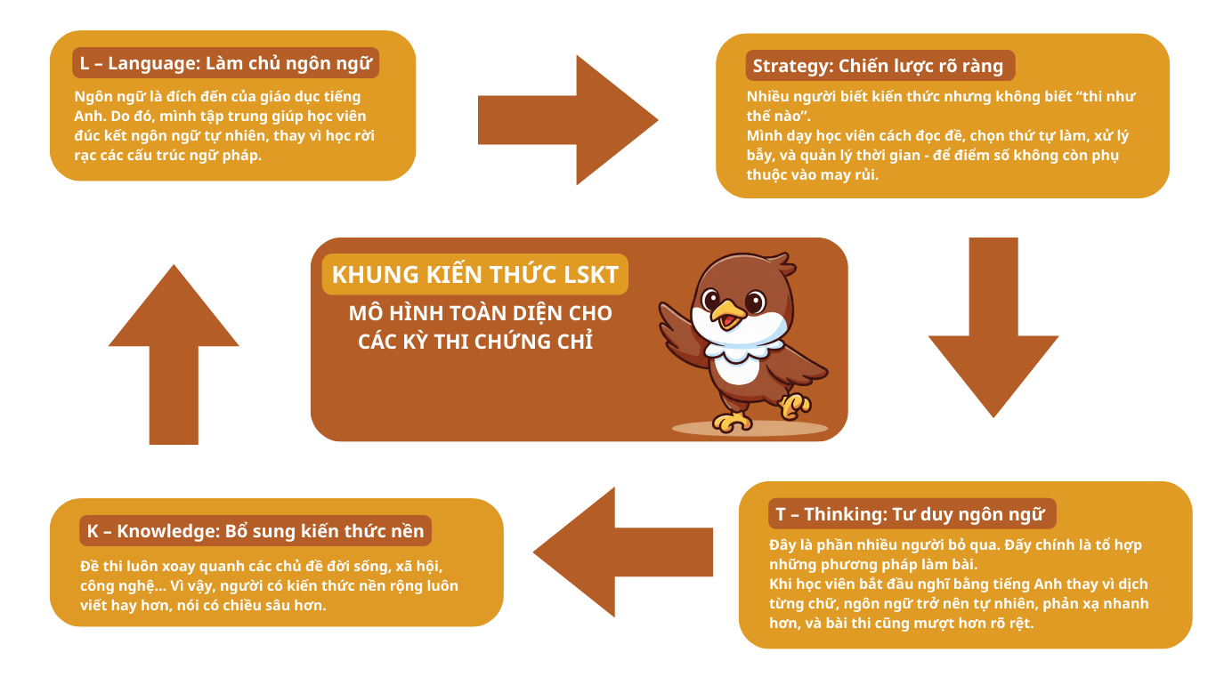 Các khóa học hiện có tại EdNest Test Prep được xây dựng dựa trên khung LSKT, giữ vững tinh thần Test to Success - Thi để Đậu